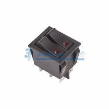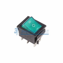 Выключатель клавишный 250V 15А (6с) ON-OFF-ON зеленый с подсветкой и нейтралью REXANT