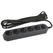 Удлинитель с сет/ф LEEK LE E1S ПВС 3х0,75 5роз. 3м 10А земля черный/серый (20)