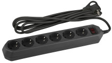 Сетевой фильтр USF-6es-5m-B-BOX ЭРА Сет.фильтр базовая защита, с/з, с выкл, 6гн, 5м, ПВС, 10А, чер