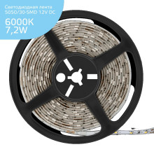 Лента светодиодная SMD5050-30 LED/м-IP65-12 В-7,2 Вт/м-6000 К (5 м) TDM