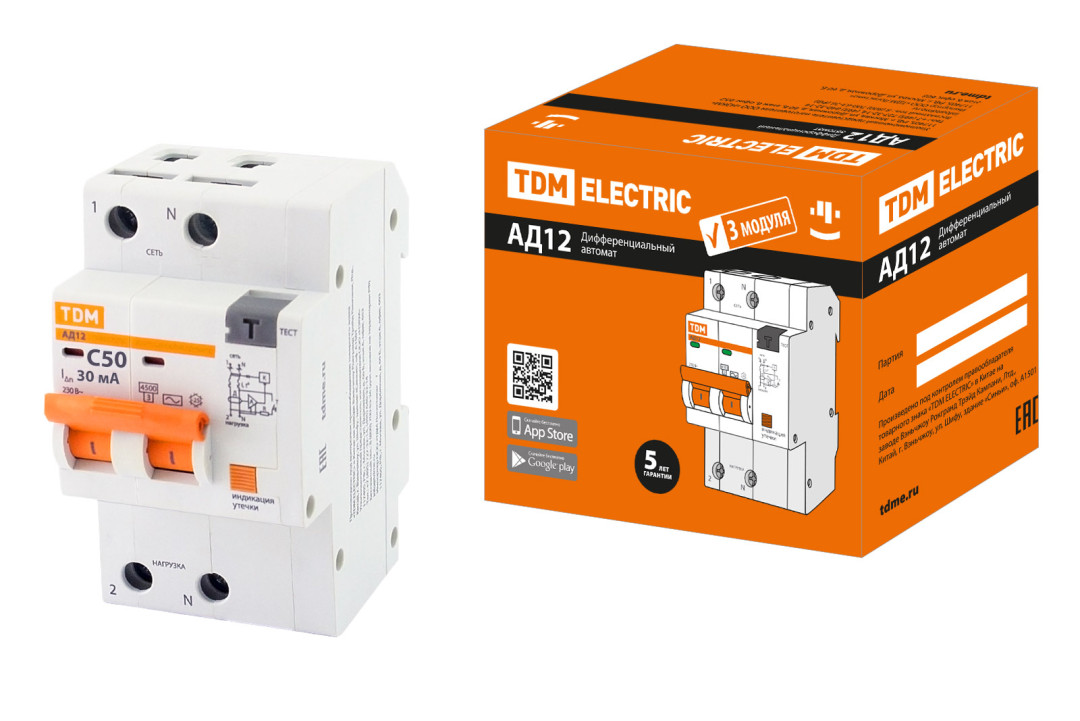 Диф.автомат АД12 2Р 50А 30мА TDM