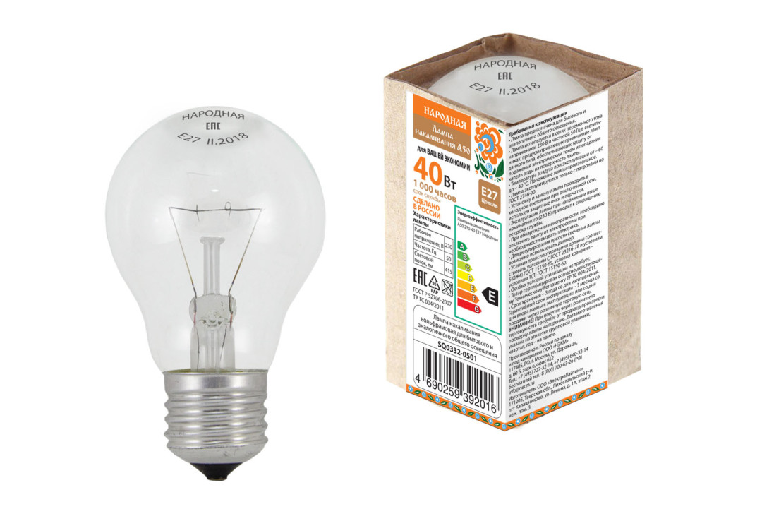 Лампа накаливания "Свеча прозрачная" 60 Вт-230 В-Е27 TDM