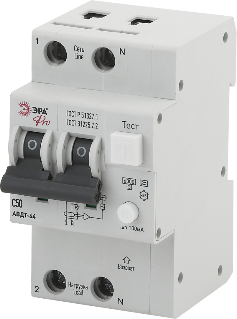 АВДТ 64 (А) C50 100mA 6кА 1P+N - NO-902-06 Автоматический выключатель дифференциального тока ЭРА Pro