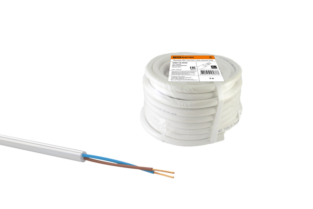 Провод ПВС 2х6 ГОСТ (5м), белый TDM