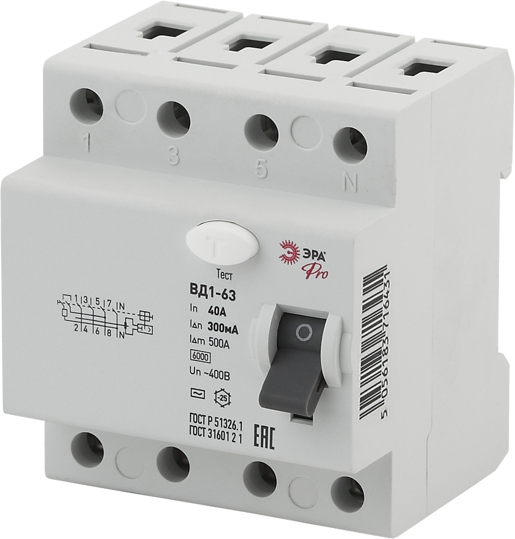 УЗО ЭРА PRO NO-902-68 ВД1-63 4P 40А 300мА
