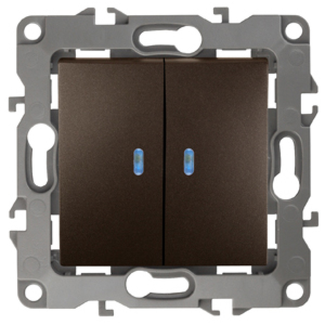12-1105-13 ЭРА Выключатель двойной с подсветкой, 10АХ-250В, IP20, Эра12, бронза