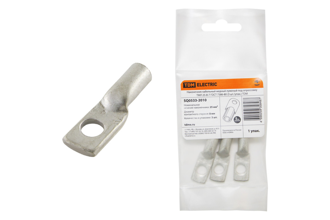 Наконечник медный луженый ТМЛ 25-8-7 ГОСТ 7386-80 (3 шт./упак.) TDM