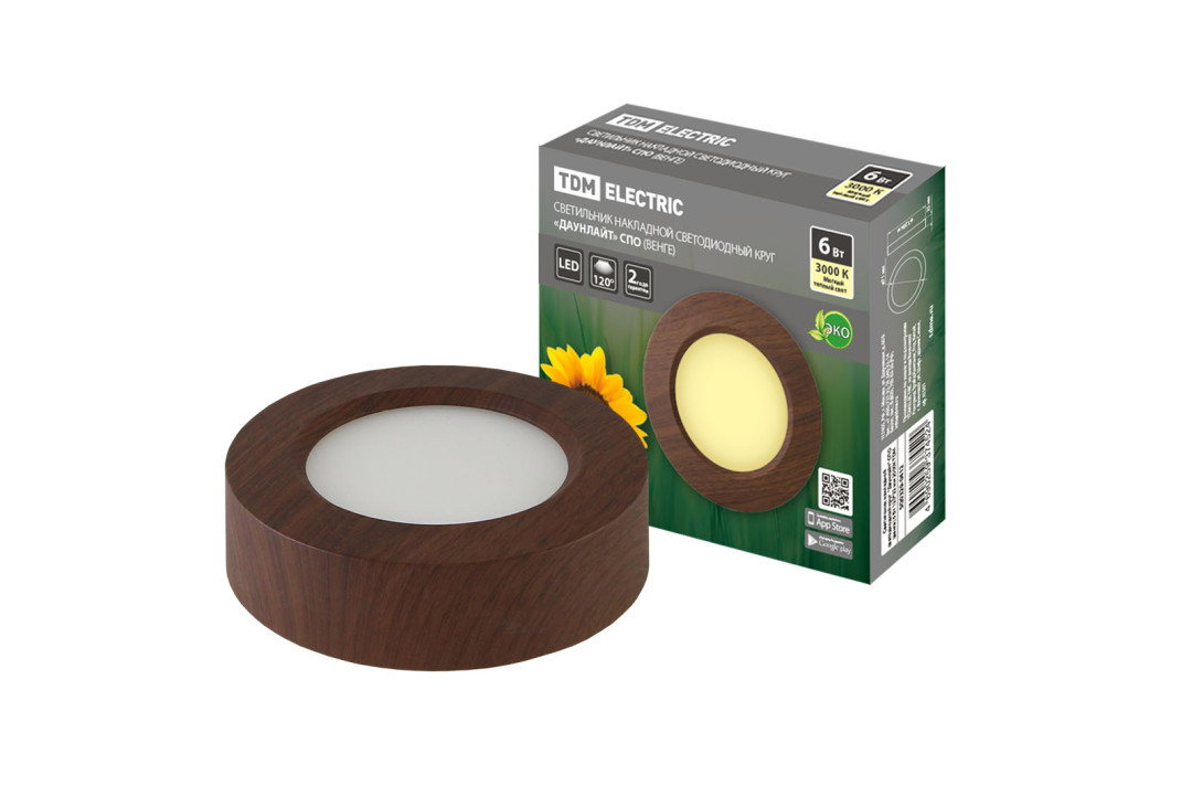 Светильник накладной светодиодный круг "Даунлайт" СПО (венге) 6 Вт 120*32 мм 3000К TDM