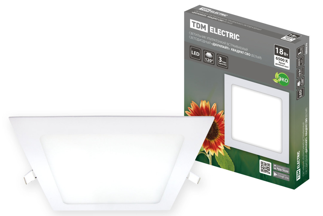 Светильник ультратонкий встраиваемый светодиодный "Даунлайт" квадрат СВО (белый) 18 Вт 6500К TDM
