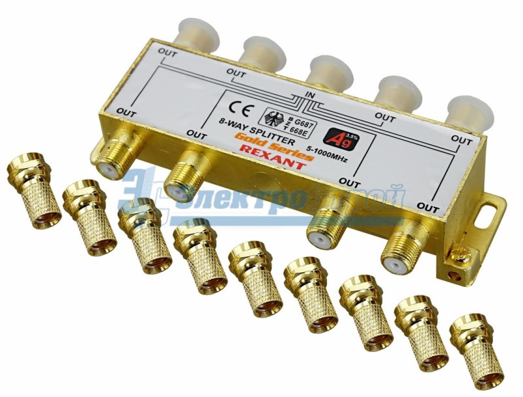 ДЕЛИТЕЛЬ ТВ x 8 + 9шт. F "BOX" 5-1000 МГц "GOLD" REXANT