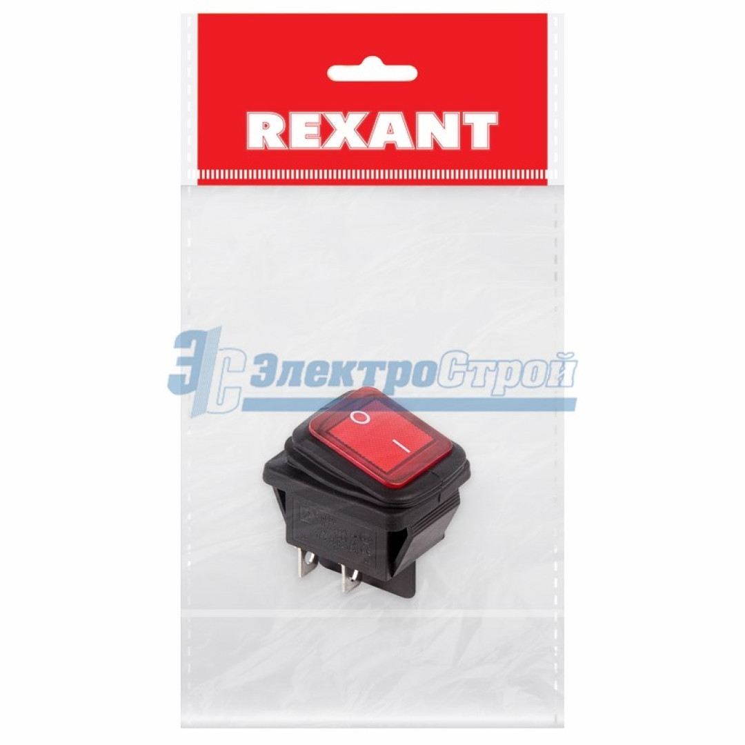 Выключатель клавишный 250V 15А (4с) ON-OFF красный с подсветкой ВЛАГОЗАЩИТА (RWB-507) REXANT Инд