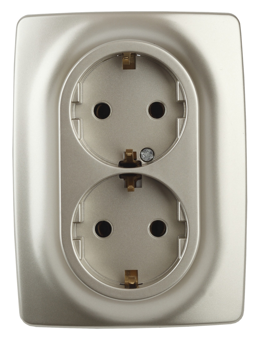 12-2108-04 ЭРА Розетка 2X2P+E Schuko со шторками, 16A-250В, IP20, Эра12, шампань