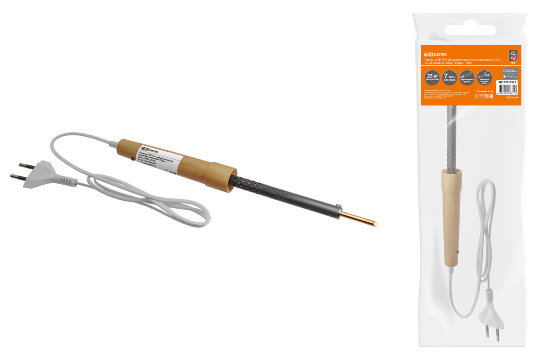 Паяльник ПД-25, ЭПСН, мощность 25 Вт, 230 В, деревянная ручка, плоское жало, "Гранит" TDM
