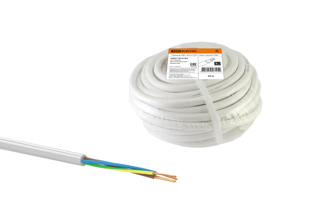 Провод ПВС 4х2,5 ГОСТ (30м), белый TDM