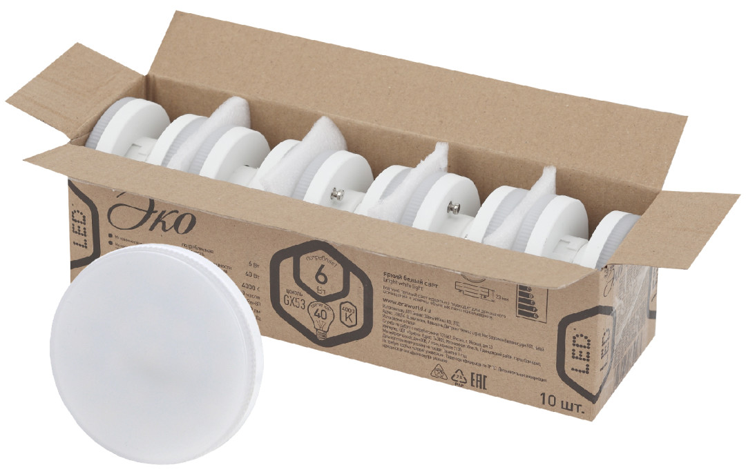 Лампа светодиодная Эра ECO LED GX-6W-840-GX53 (10-PACK) (диод, таблетка, 6Вт, нейтр, GX53)