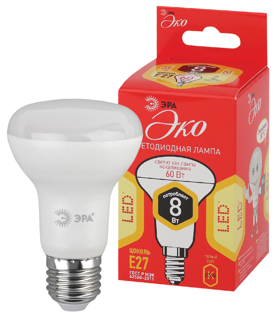 Лампа светодиодная Эра ECO LED R63-8W-827-E27 (диод, рефлектор, 8Вт, тепл, E27)