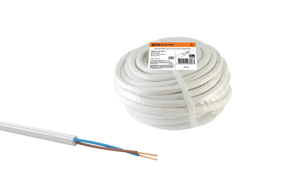 Провод ПВС 2х0,75 ГОСТ (20м), белый TDM