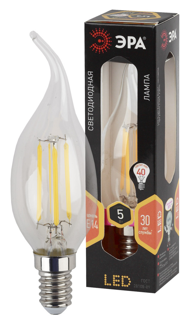 Лампа светодиодная Эра F-LED BXS-5W-827-E14 (филамент, свеча на ветру, 5Вт, тепл, E14)