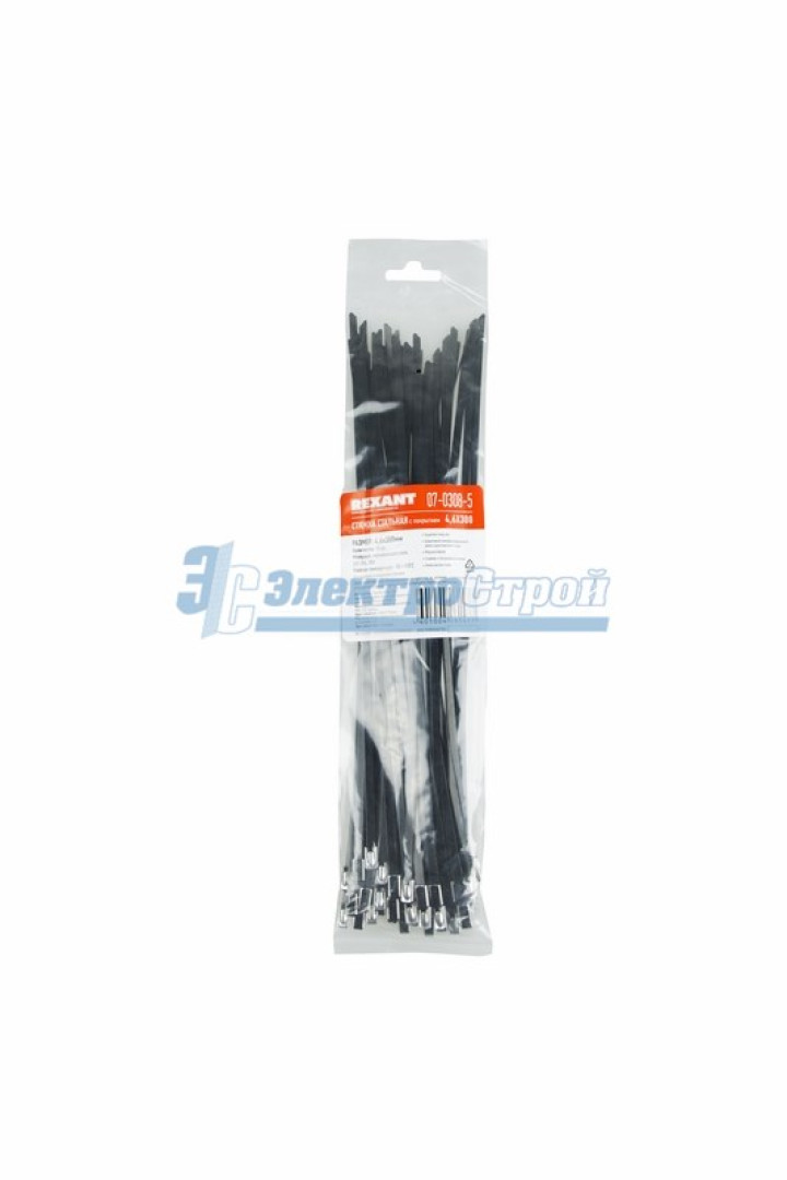 Хомут стальной с полимерным покрытием 300 x 4,6мм 50 шт REXANT