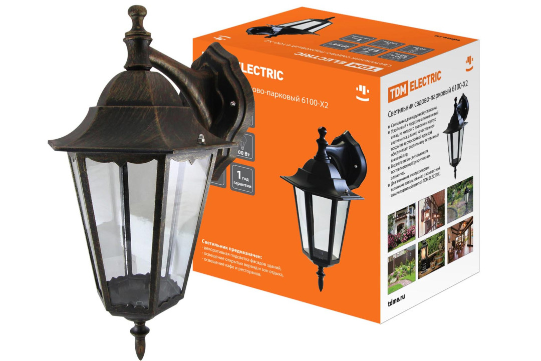 Светильник 6100-12 садово-парковый шестигранник, 100Вт, вниз, бронза TDM