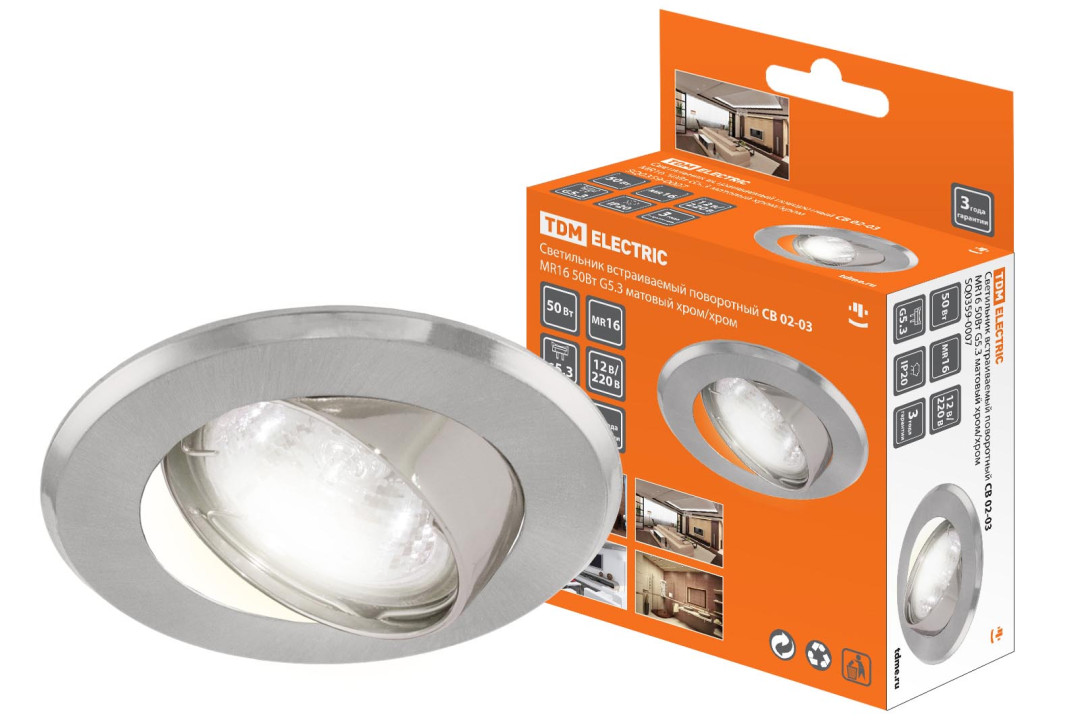 Светильник встраиваемый поворотный СВ 02-03 MR16 50Вт G5.3 матовый хром/хром TDM