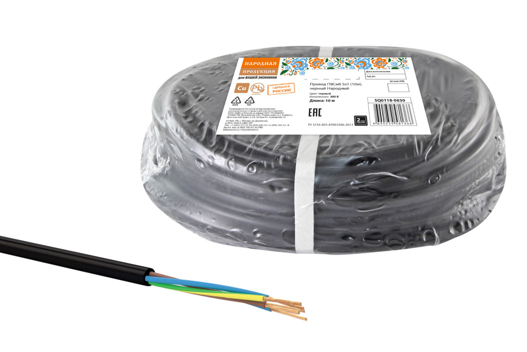Провод ПВСмб 5х1 (10м), черный Народный