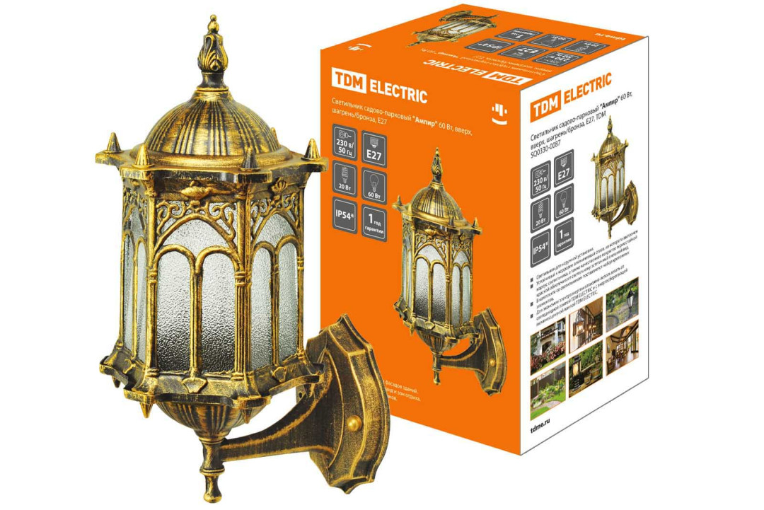 Светильник садово-парковый "Ампир" 60 Вт, вверх, шагрень/бронза Е27, TDM