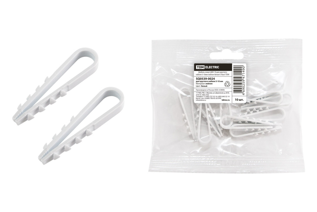Дюбель-хомут ДХК-10 для круглого кабеля 5-10мм нейлон белый (10шт) TDM