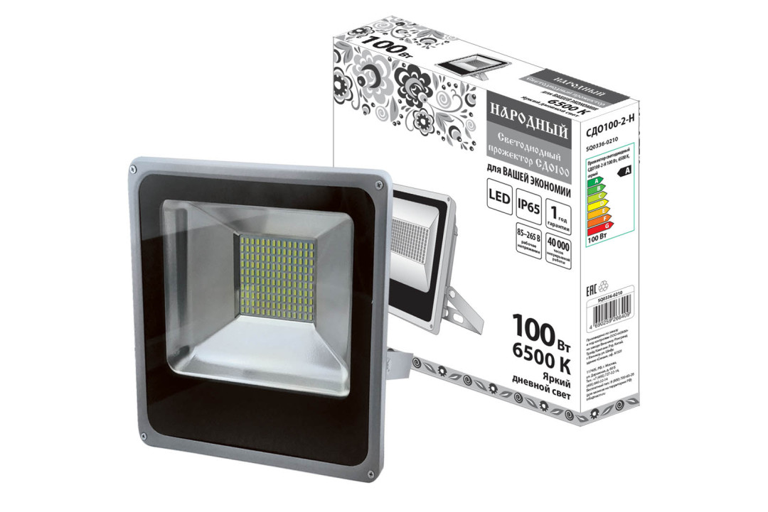 Прожектор светодиодный СДО100-2-Н 100 Вт, 6500 К, серый