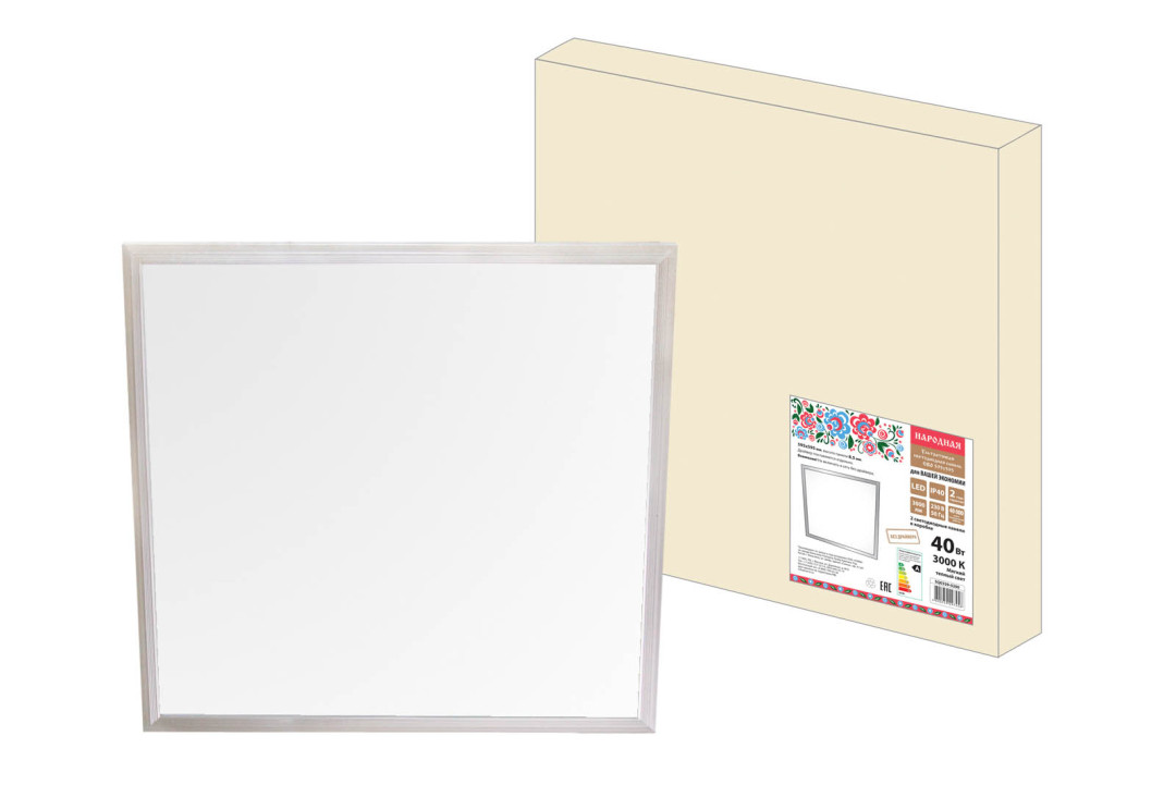 Ультратонкая светодиодная панель серии СВО 595х595, 40 Вт, 3000 К, хром, Народная