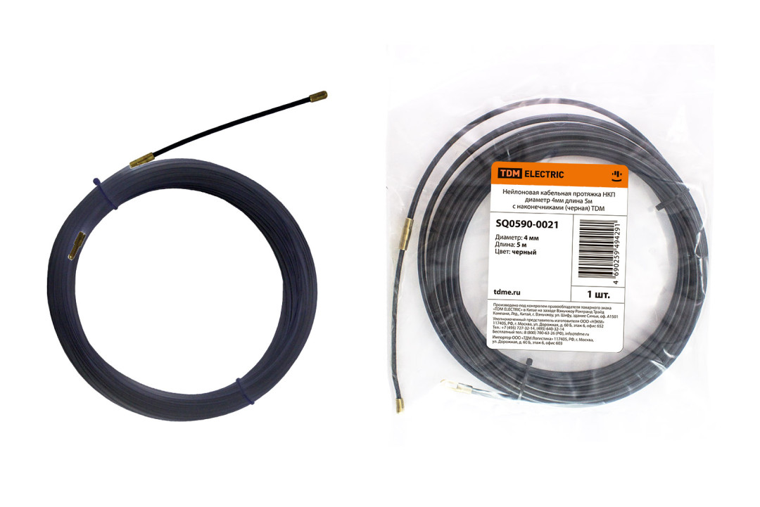 Нейлоновая кабельная протяжка НКП диаметр 4мм длина 5м с наконечниками (черная) TDM