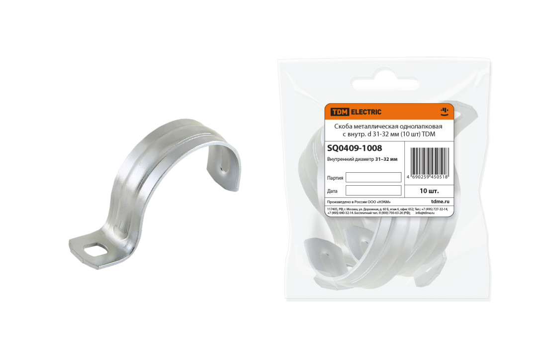 Скоба металлическая однолапковая с внутр. d 31-32 мм (10 шт) TDM