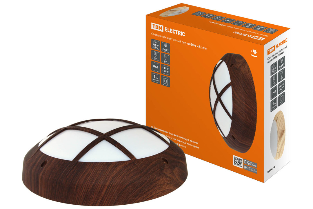 Светильник ФБУ 05-2х20-014 "Бриз 2" венге с решеткой IP64 TDM