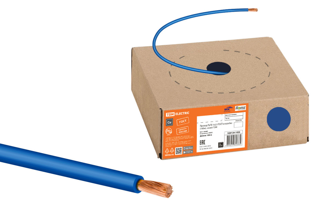Провод ПуГВ 1х2,5 ГОСТ в коробке (100м), синий TDM