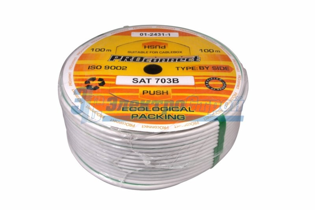 Кабель SAT 703 B, Cu/Al/Al, (75%), 75 Ом, 100м., белый PROCONNECT