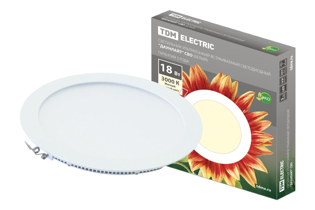 Светильник ультратонкий встраиваемый светодиодный "Даунлайт" СВО (белый) 18 Вт 3000К TDM