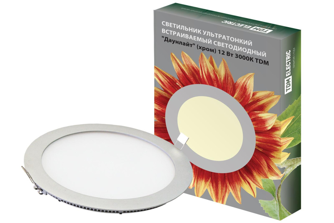 Светильник ультратонкий встраиваемый светодиодный "Даунлайт" СВО (хром) 12 Вт 3000К TDM