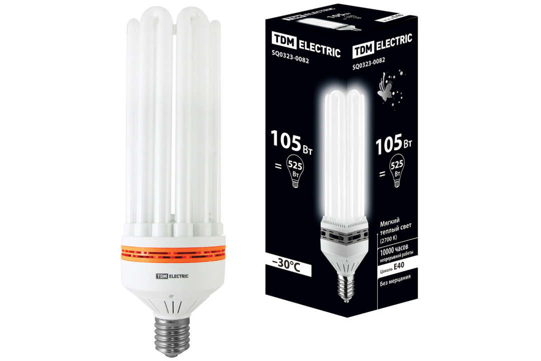 Лампа энергосберегающая КЛЛ-6U-105 Вт-2700 К–Е40 (105х350 мм) TDM