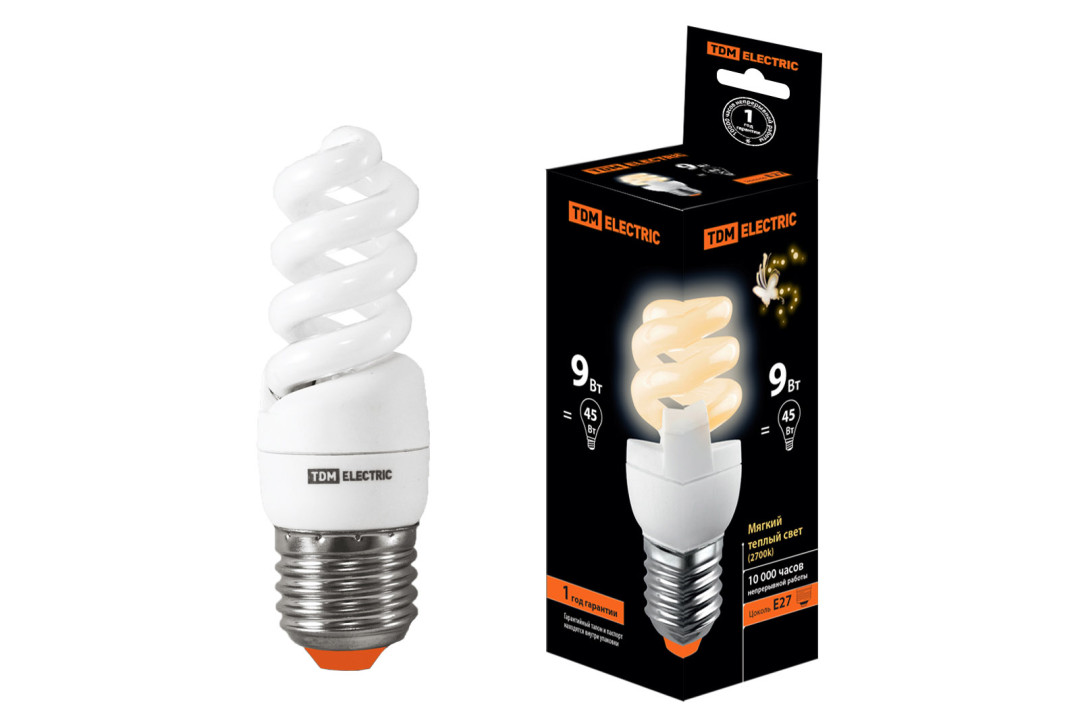Лампа энергосберегающая КЛЛ-С-9 Вт-2700 К–Е14 TDM (выведено из ассортимента)