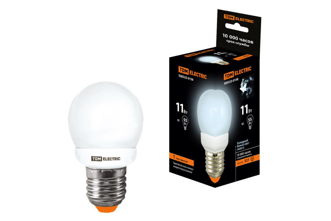 Лампа энергосберегающая КЛЛ-G45-11 Вт-4000 К–Е27 TDM