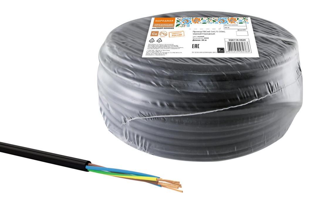 Провод ПВСмб 5х0,75 (50м), черный Народный
