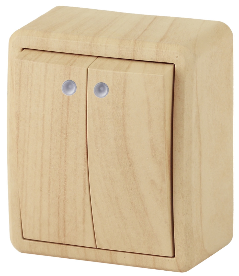 11-1205-11 ЭРА Выключатель двойной с подсветкой, 10АХ-250В, IP20, ОУ, Эра Эксперт, сосна