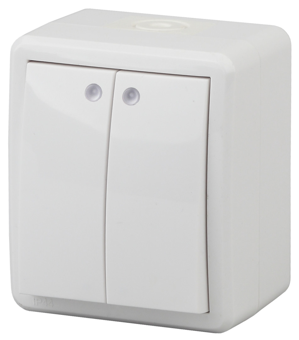 11-1405-01 ЭРА Выключатель двойной с подсветкой IP54, 10АХ-250В, ОУ, Эра Эксперт, белый