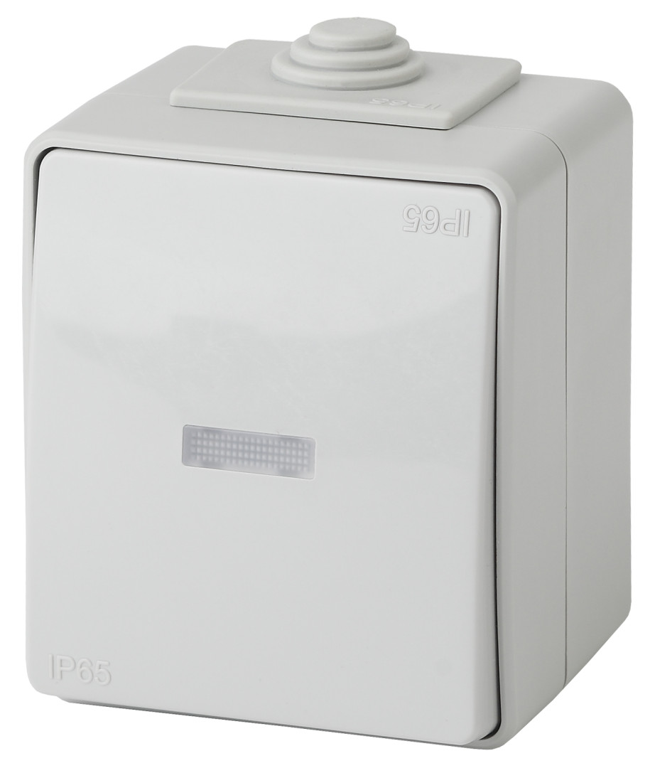 11-1602-03 ЭРА Выключатель с подсветкой IP65, 10АХ-250В, ОУ, Эра Эксперт, серый