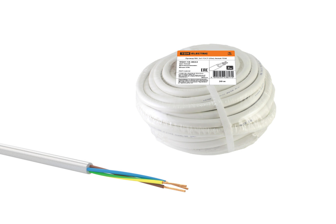 Провод ПВС 3х1 ГОСТ (20м), белый TDM