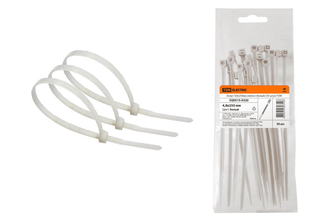 Хомут 4,8х250мм нейлон (белый) (50 штук) TDM