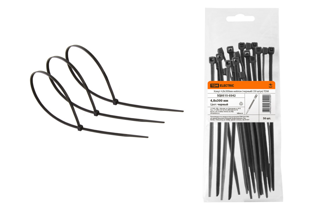 Хомут 4,8х300мм нейлон (черный) (50 штук) TDM