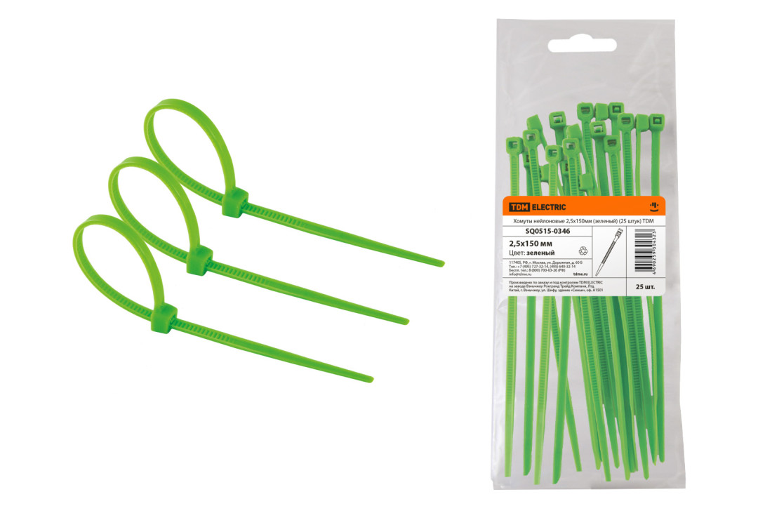 Хомуты нейлоновые 2,5х150мм (зеленый) (25 штук) TDM