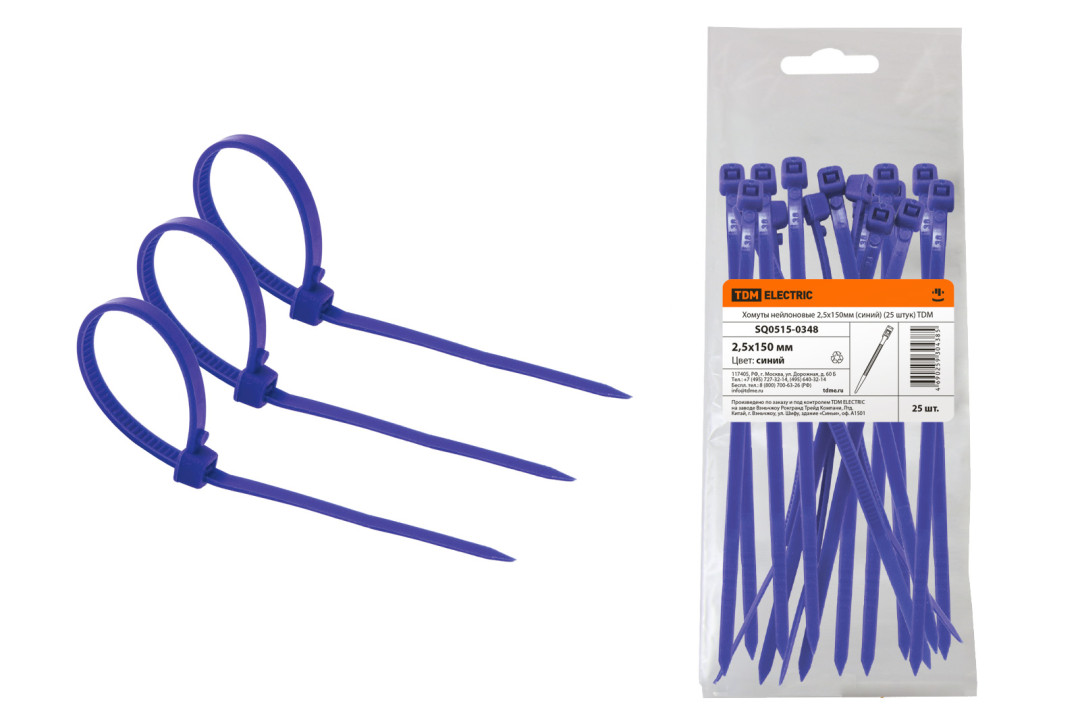 Хомуты нейлоновые 2,5х150мм (синий) (25 штук) TDM
