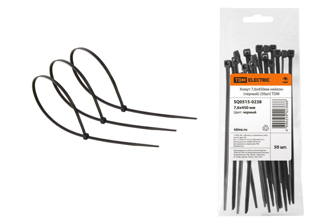 Хомут 7,6х450мм нейлон (черный) (50шт) TDM